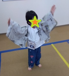 チョキチョキ、ペッタンで大満足の大きな羽のできあがり。