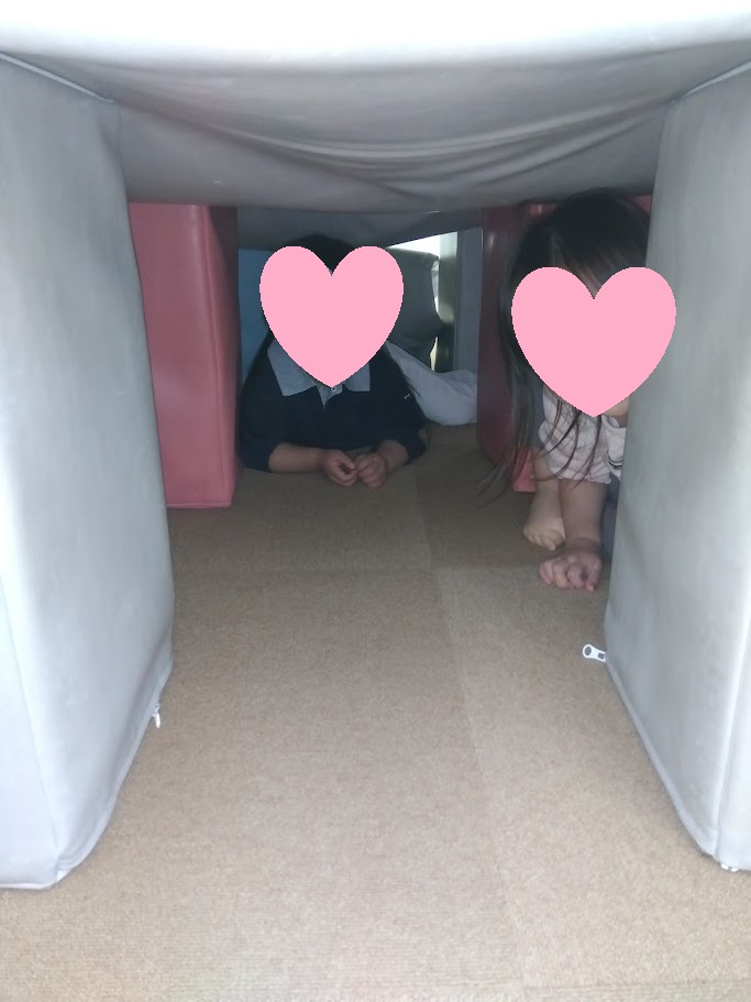 子どもたちに負けじと知恵を絞って、トンネルのようなお家を作りました🏚️