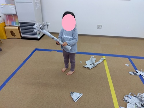 新聞紙遊びでは、新聞を細かく千切ったり、パンチして破ってみたりと遊び方は様々です!
