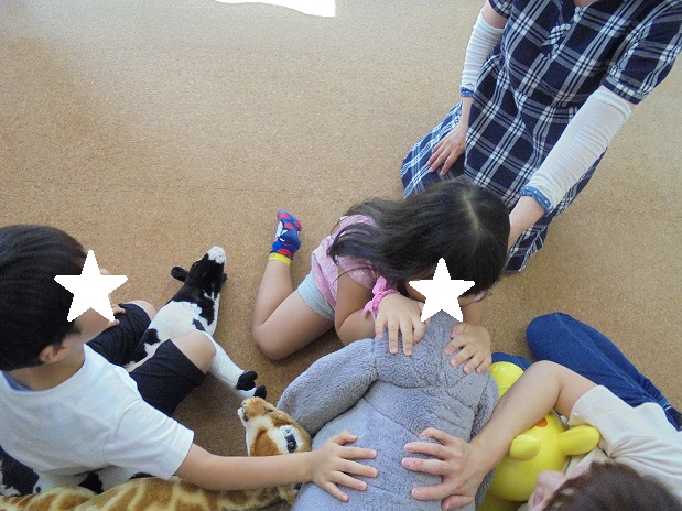 灰色を探すも、ゾウさんの色しか見つからずみんなでゾウさんに集合しました♪