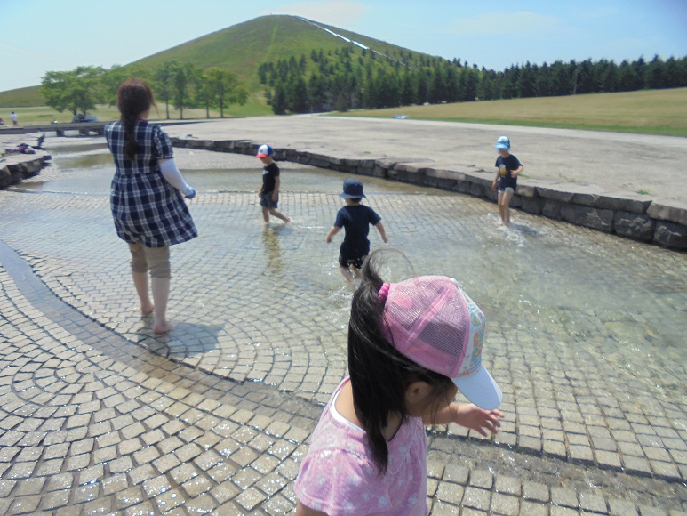 暑い日のお兄さんお姉さんチームは、モエレ沼公園の水路にて水遊びをしました!