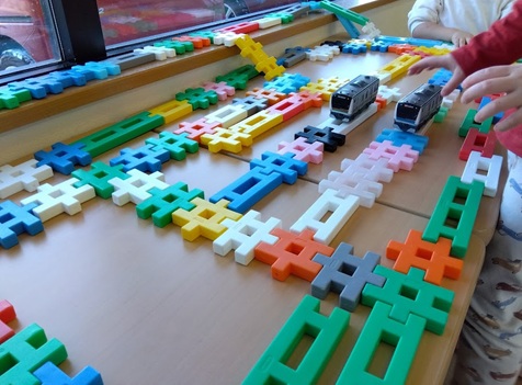この時は、ブロックを長くつなげてカラフルな線路を作っていました!