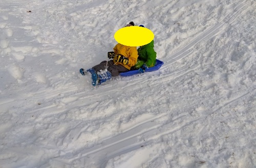 2人乗りのそりにはお友達と仲良く乗ってそり滑りをしていますよ!