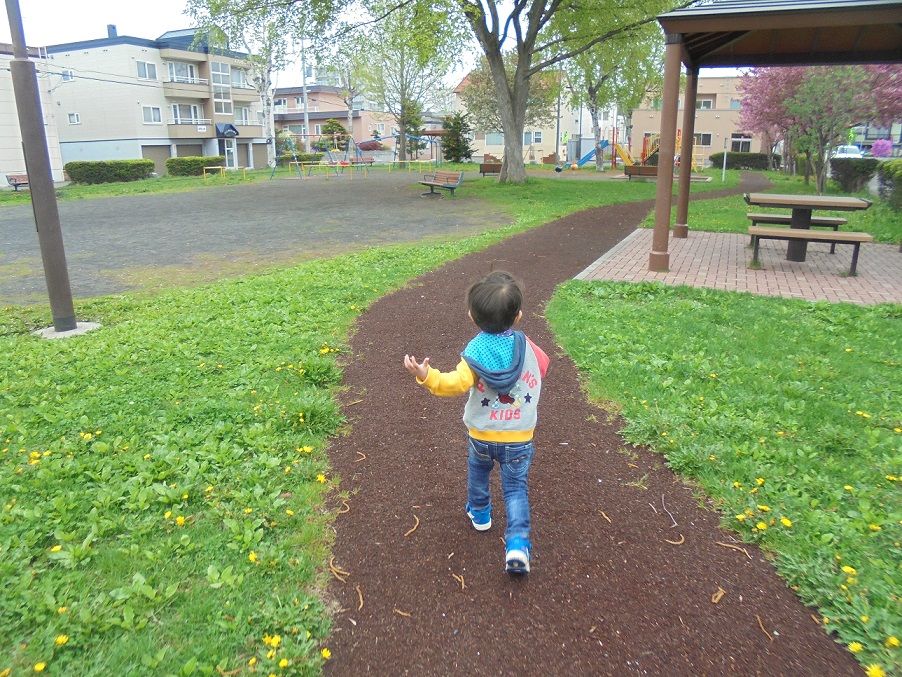 すぐ近くの公園へお散歩がてらお出かけし、たくさん歩いてたくさん走って。