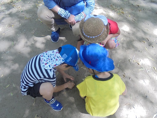 お外は暑いけど土は冷たくて「気持ちい~」といっていました♪