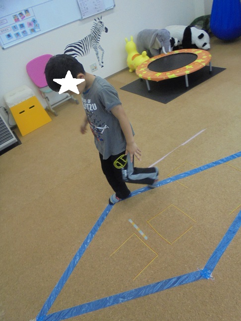 今日は集団活動の中で、線の上を歩く運動を行いました。