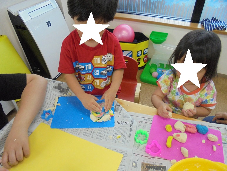昨日は油粘土でしたが、今日は小麦粉粘土で遊びました!
