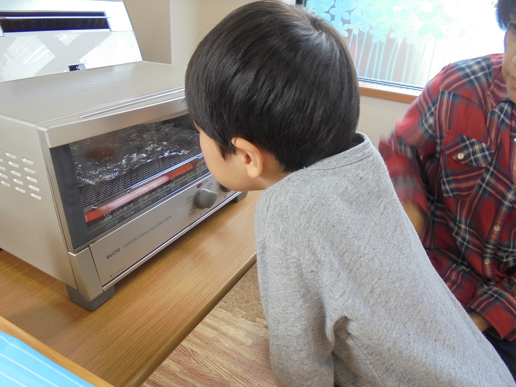 でも、オーブンの中で縮まっていく様子に大喜び。